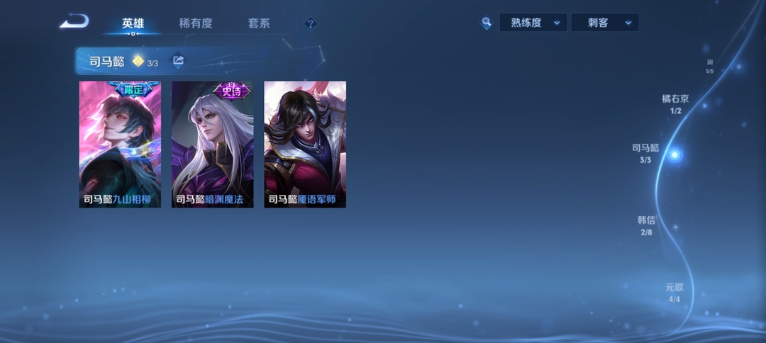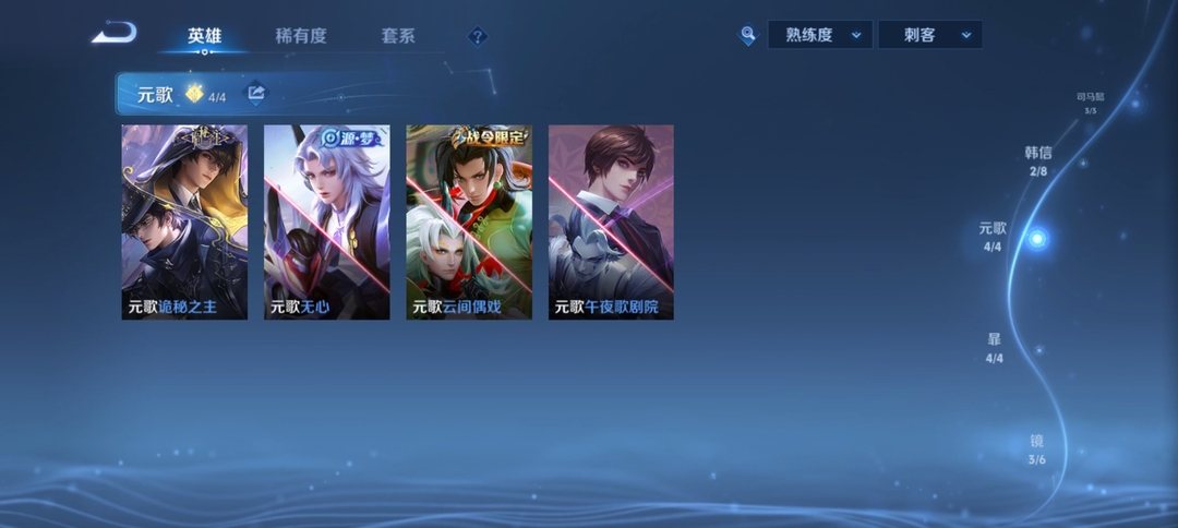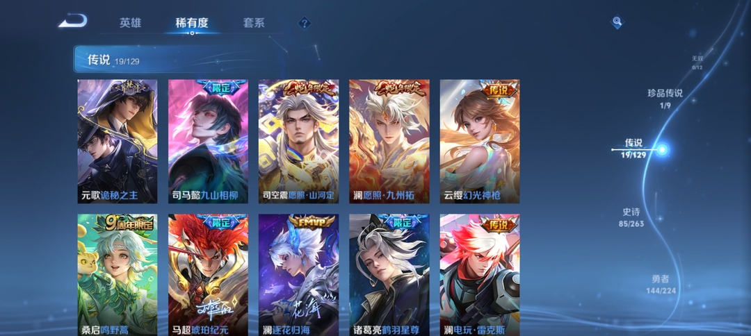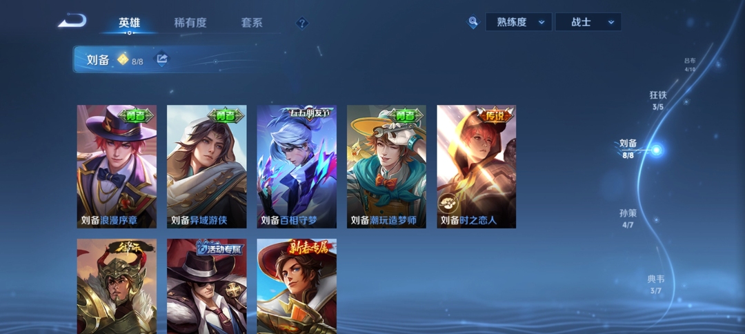 刘备全皮,澜全皮,元歌全皮,姜子牙全皮,司马懿全皮,李信全皮,定期会更新皮肤